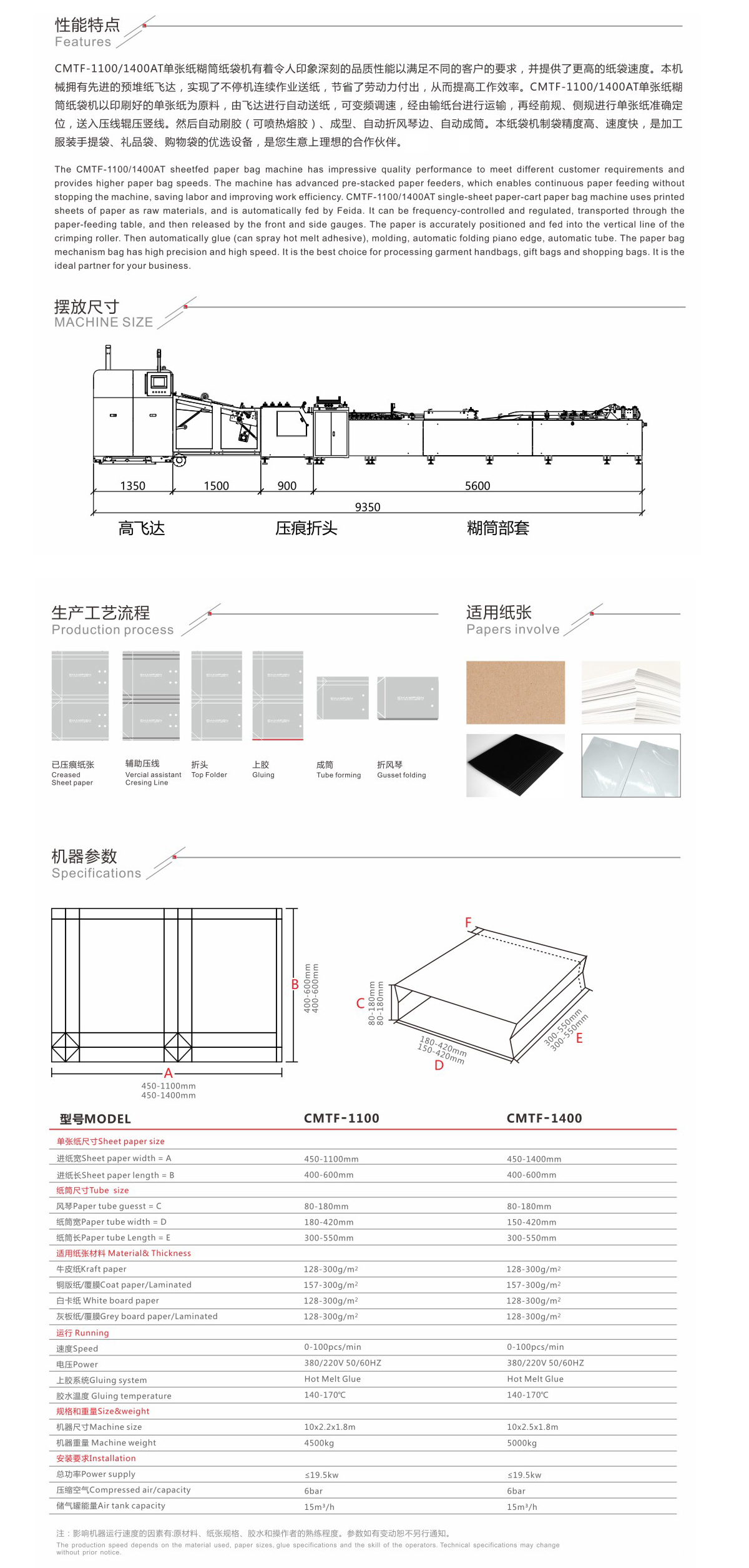 - 紙袋機使用的紙張大小、厚度,范圍廣